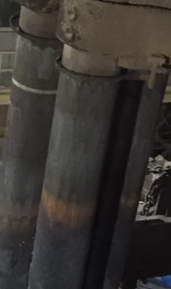 As the electrode enters the furnace, the barrier becomes molten and continues protecting the electrode further down its length, effectively reducing sidewall oxidation. The barrier forms a white or gray protective coating, clearly visible after application.