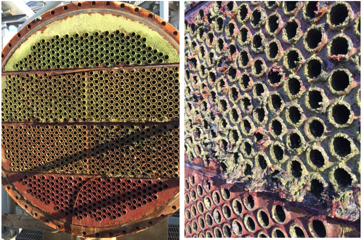 A classic example of concurrent issues can be seen in Figure 2, which shows a multi-pass tube-and-shell heat exchanger, whose cooling water at the time was treated with a traditional phosphate-based program.