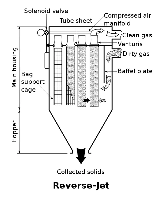Figure 5.1.6 Basic schematic of a pulse-jet fabric filter particulate control device.