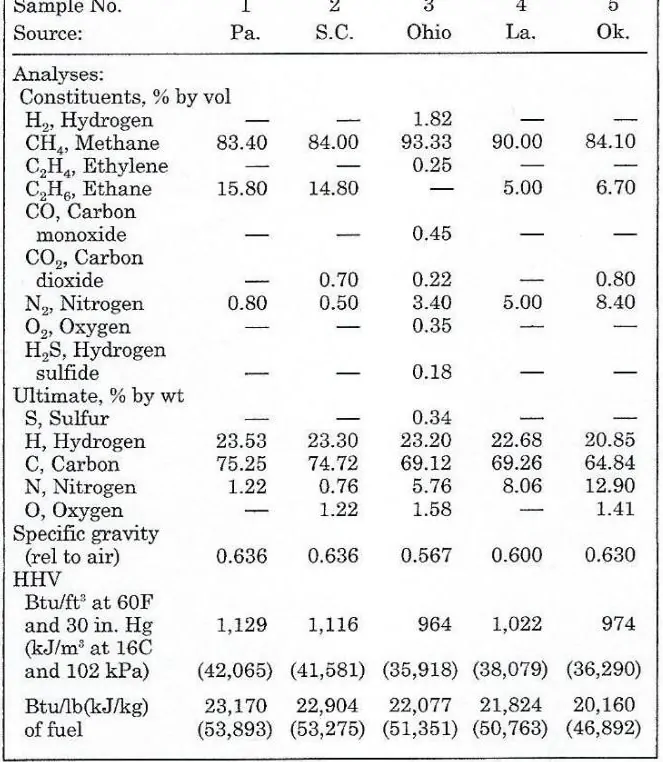 Table 5-6 – Composition of Several Natural Gas Supplies. Courtesy of The Babcock & Wilcox Company.