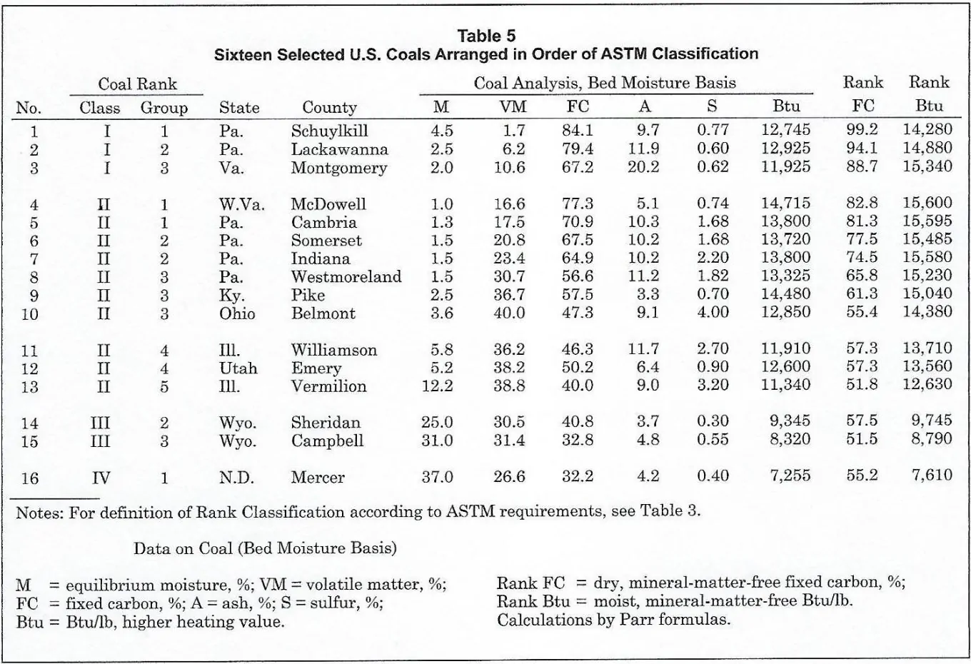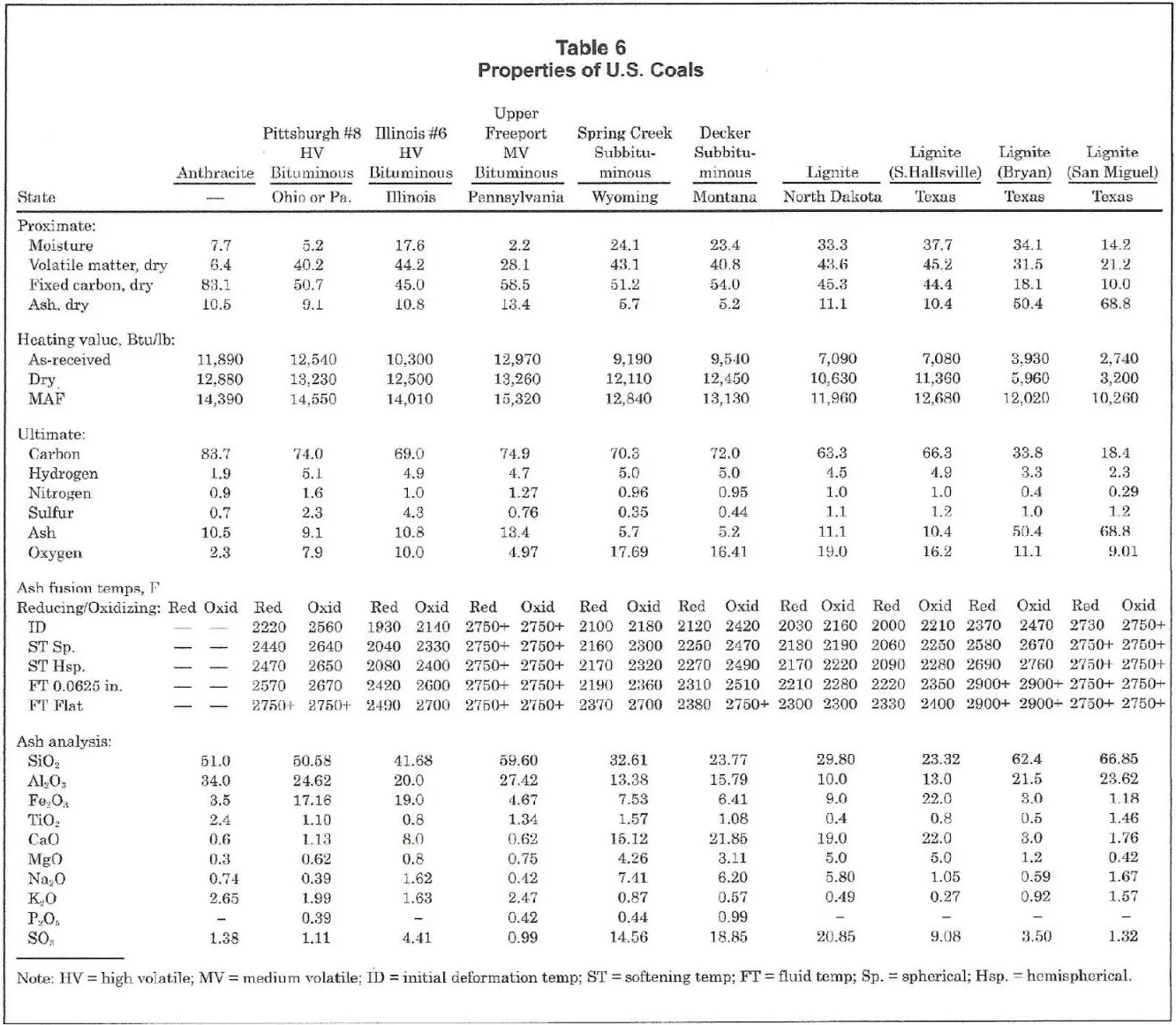 Table 5-7 outlines additional fuel analyses from coals around the United States and, for the discussion in this section, illustrates the ash chemistry of these coals.
