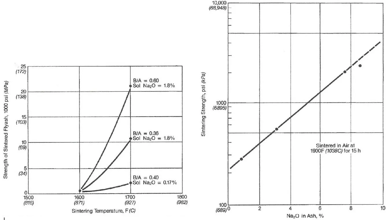Greater sintering strength equates to increasing difficulty in removing deposits with sootblowers. Further, sintering strength can be greatly reduced by washing the coal to reduce the active alkali concentration.