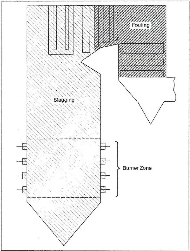 Figure 5.2 Typical regions in a boiler for slagging and fouling. Courtesy of The Babcock & Wilcox Company.