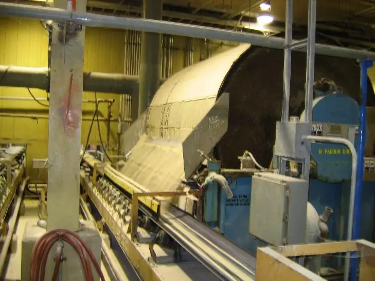 Figure 5.1.8 A rotary drum vacuum filter in operation removing gypsum “cake.” Photo courtesy of City Water, Light & Power.
