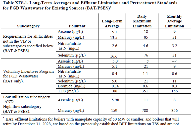 Discharge of trace impurities from wet scrubbers and ash ponds at operating and shutdown facilities is a prominent concern. Many ponds are being closed to prevent further contamination of surface water and groundwater from these impoundments. The table below outlines the four priority parameters, selenium, arsenic, mercury, and nitrate/nitrite, which are to be placed in the EPA “Effluent Limitations Guidelines” for WFGD wastewaters.