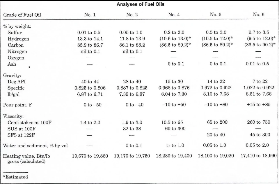 Table 5-5 – Fuel Oil Specification Ranges. Courtesy of The Babcock & Wilcox Company Company.